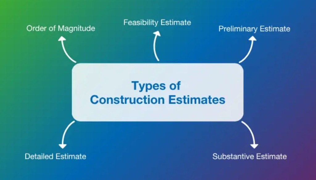 Construction estimates are prepared at different stages of a project depending on the level of information available. The main types are: